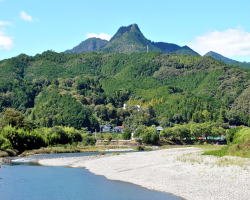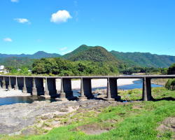 また、この橋からは横倉山も眺めることもできます。ユニークな山頂の形をした横倉山と清流仁淀川のコラボの風景も堪能しました(写真右)。