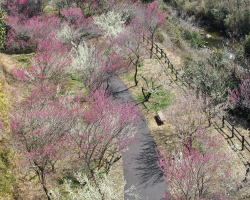 宿毛市の楠山公園に行ってきました。ここは、美しい梅林で知られています。ちょうど梅の花が見ごろを迎えており、青空に映える数多くの紅梅、白梅が織りなす風景を楽しむことができました。