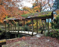 建築から20年以上経った屋根付き橋です。周囲の風景にすっかり溶け込んだ屋根付き橋の風景を楽しみました。また、周囲では紅葉も見ごろになっていて彩を添えていました。